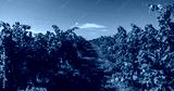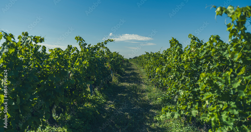blue grapes in green vineyard