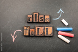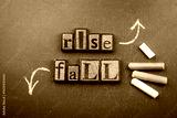 Conceptual image of chalk-drawn arrows representing Rise and Fall drawn step-by-step on a blackboard
