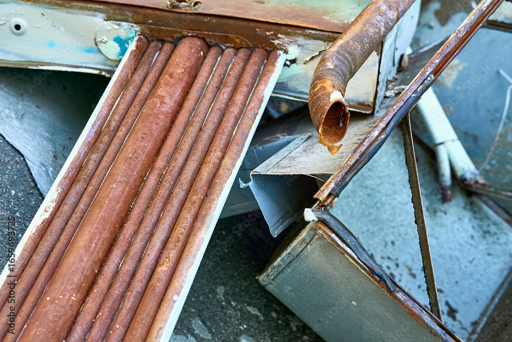 Trash.Rusty old water tube pipe,rusty.A pile of scrap iron