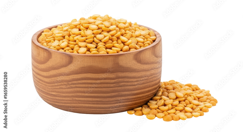 Isolated Yellow Split Peas in Wooden Bowl
