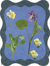 Page for stories. Photo album, dry flowers boutonniere. Scrapbook composition with floral elements. Page from an old photo album. Forest violet flowers.