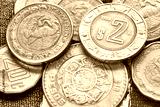 Extreme close up picture of Mexican peso, shallow depth of field.