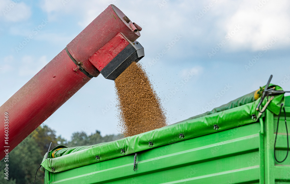 Loading grain from a loader wagon onto an agricultural trailer - 9063
