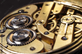 Old mechanical pocket watch. Clockwork gears wheels, close-up view.