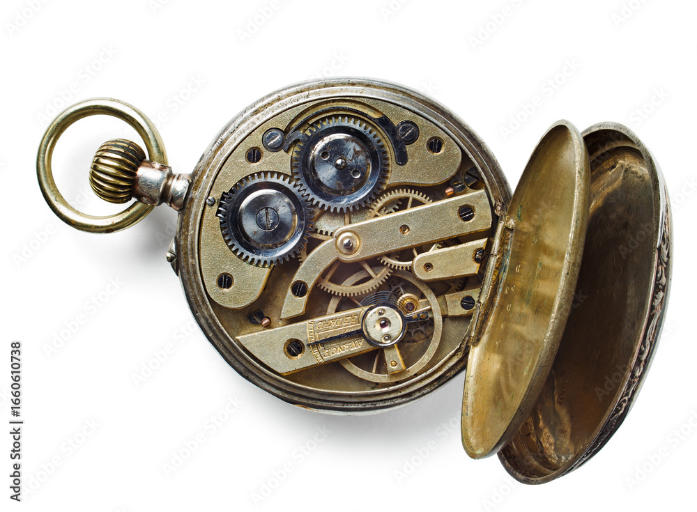 Ancient pocket watch. Isolated, clipping path included.