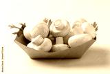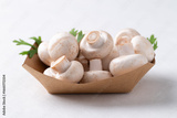 White Button mushroom or Champignon mushroom (Agaricus bisporus) in paper bowl, Food ingredient