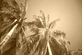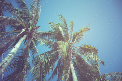Leaves of coconut on a blue sky background,vintage filter