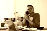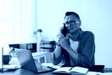 Businessman sitting at his desk in the office, receiving bad news during a phone conversation, displaying signs of worry and stress while managing a challenging situation
