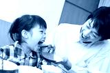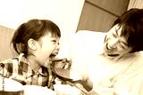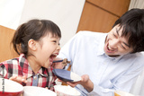 娘に肉を食べさせる父親