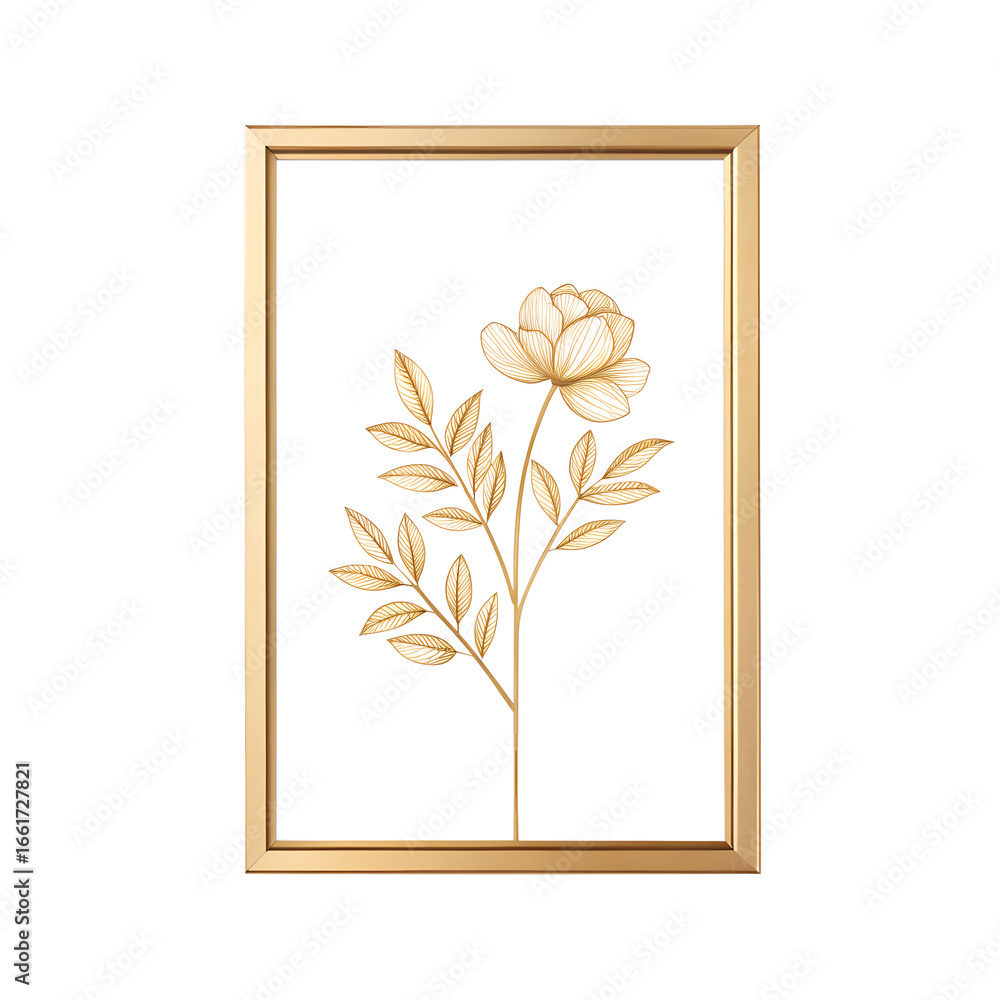 Elegant Gold Framed Line Art Floral Print: Modern Minimalist Home Decor Wall Art.
