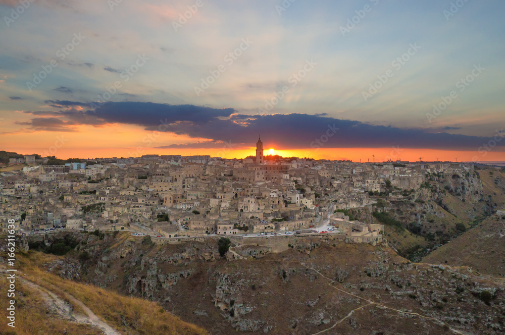 Matera (Basilicata) - The historic center of the wonderful stone city of southern Italy at sunset, a tourist attraction for the famous "Sassi" old town.