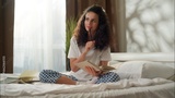 Woman reading book in bed thoughtful girl studying thinking idea in bedroom morning home education writing in notebook female student businesswoman prepare homework write notes comfort study knowledge