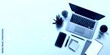 Office workplace with laptop, notebook, office supplies and stationery on yellow background. Solution, business planning, creative, design, learning, start up or working flat lay top view concept.