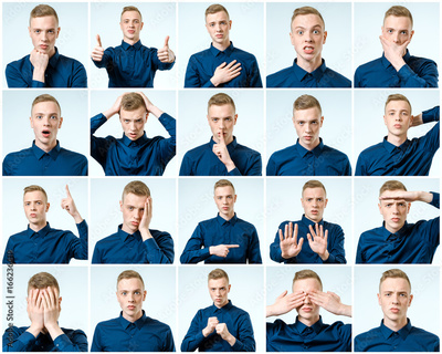 Set of handsome emotional man isolated