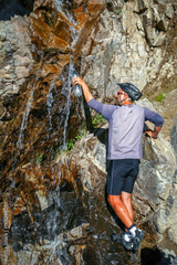 Collecting water from a mountain stream