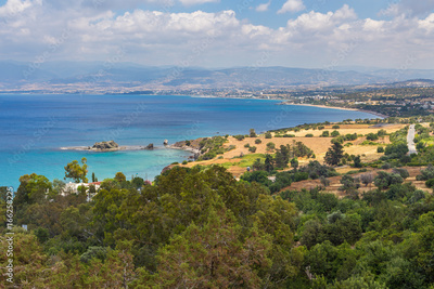 Sea view from the peninsula of Akamos. The town Latsi in the background. Cyprus