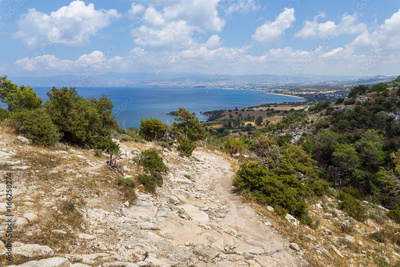 Sea view from the peninsula of Akamos. The town Latsi in the background. Cyprus