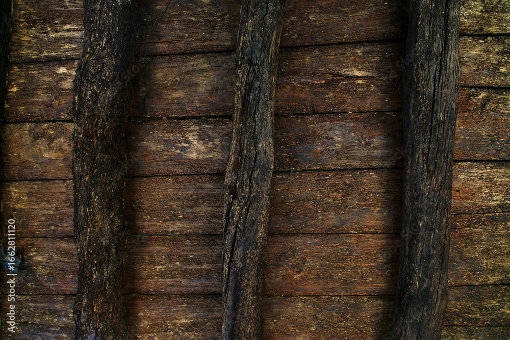 Ceiling in old Italian trattoria restaurant. Old wood on ceiling. Tuscany, Italy