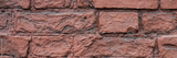Old red brick wall. The texture of weathered grungy brickwork. Wide panoramic background with masonry.