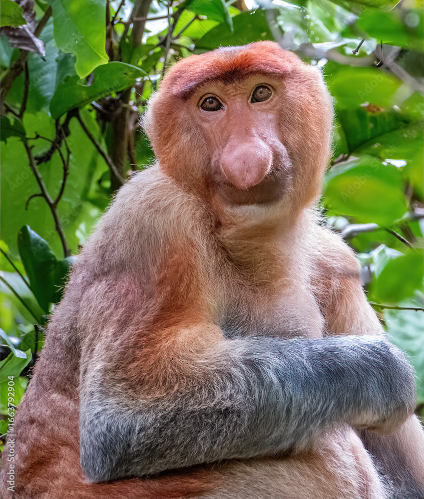Proboscis Monkey (Nasalis larvatus) Sitting in a Tree at Bako National Park, Sarawak, Borneo, Malaysia