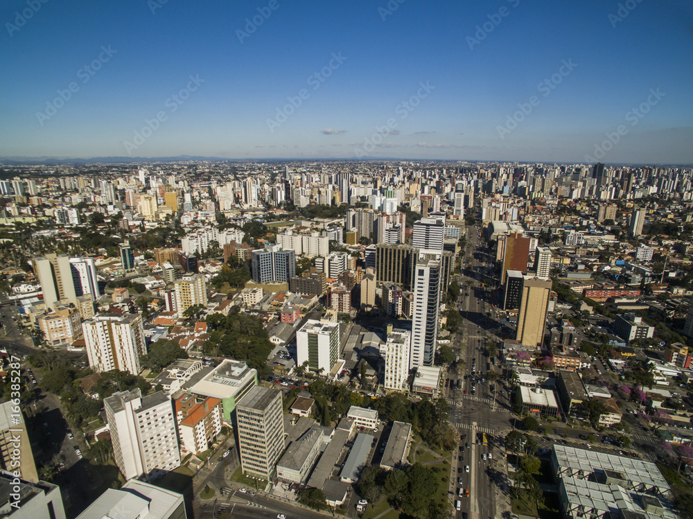 Aerial view of Curitiba cityscape, Parana State, Brazil. July, 2017.