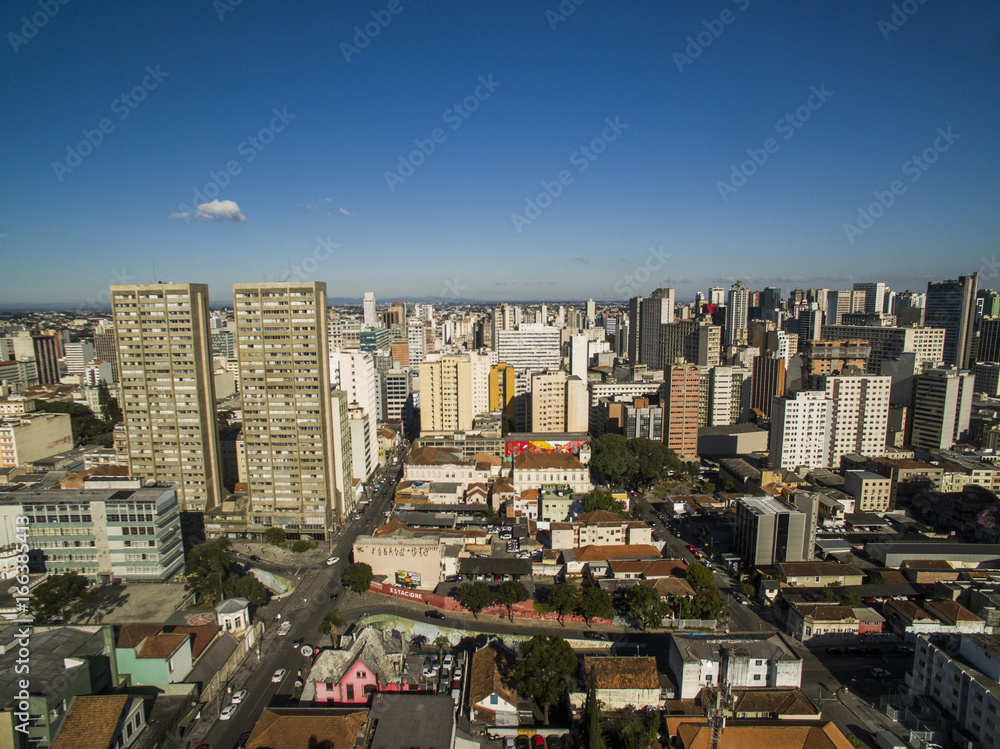 Aerial view of Curitiba cityscape, Parana State, Brazil. July, 2017.