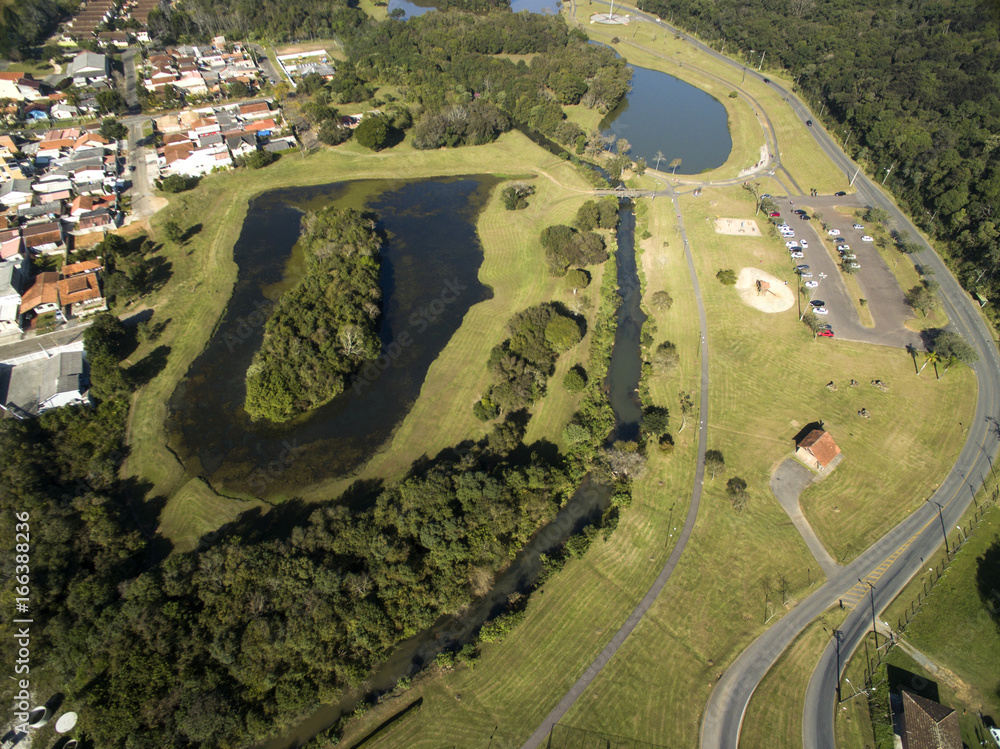 Public park in Curitiba, Parana, Brazil. Aerial view Tingui Park.