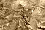 Folhas da árvore de pinhão roxo, pinhão-vermelho ou pinhão-bravo, galho da planta tropical