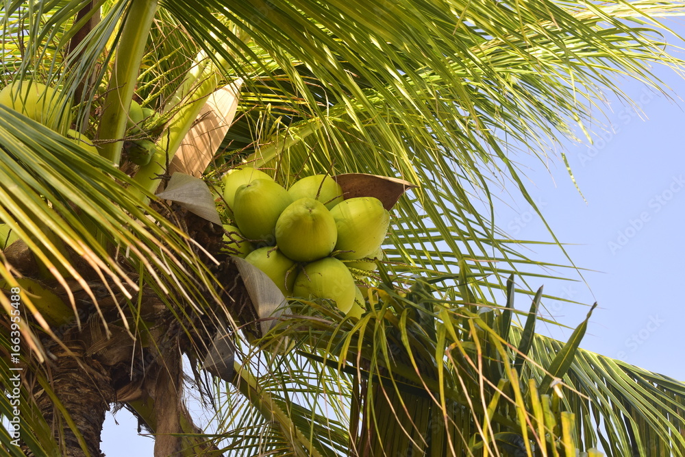 Cultivo de coco verde em fazenda tropical, produção de água e óleo de coco orgânico