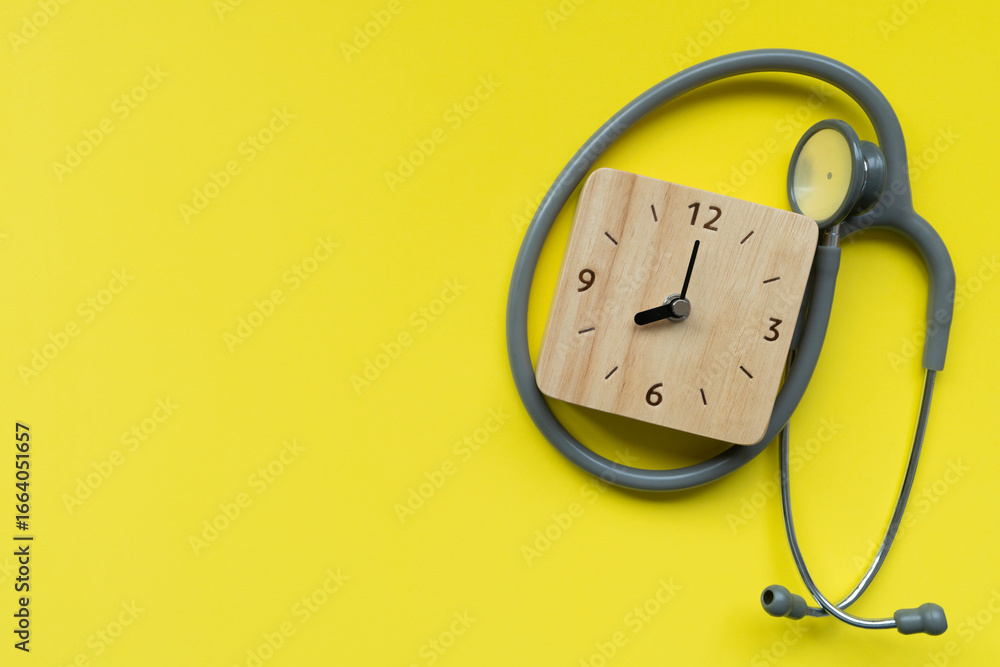 Top view of stethoscope and calendar on the green background, schedule to check up healthy concept