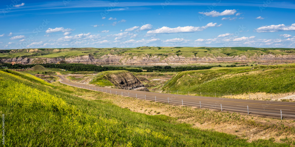 Panorama of canadian badlands in Alberta