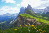 Seceda peak, Dolomites Alps, Italy - Landscape with stunning Odle mountain range. Artistic picture of a beautiful world