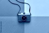 Fashion Film Camera. Hot Summer Vibes. Pop Art. Creative Retro Design camera. Hipster Trendy Accessories. Sunny summer Still life. Bright Sweet fashion Style. Surreal, Minimal Fun.Vanilla Pastel Color