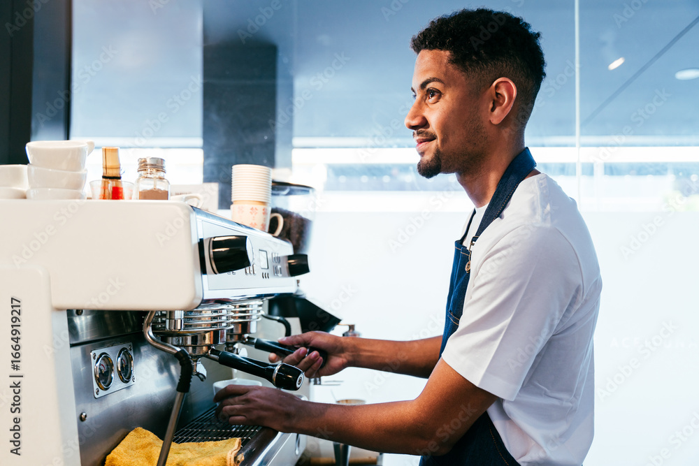 Barista working in a bar cafeteria