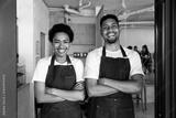 Barista and waiter working in a bar cafeteria shop