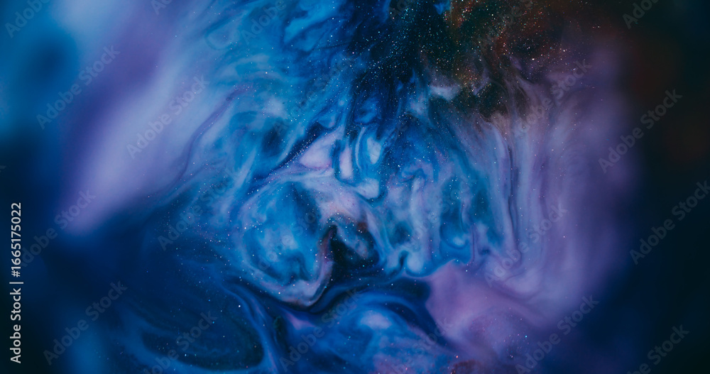 Paint mix. Blur bokeh art. Defocused blue purple multicolor wet texture liquid water floating on abstract dark black creative background.