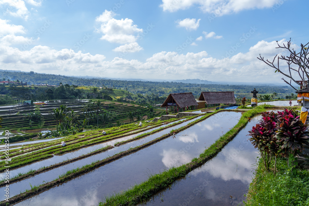 Woman looking at the Rice fields on the island of Bali Jatiluwih