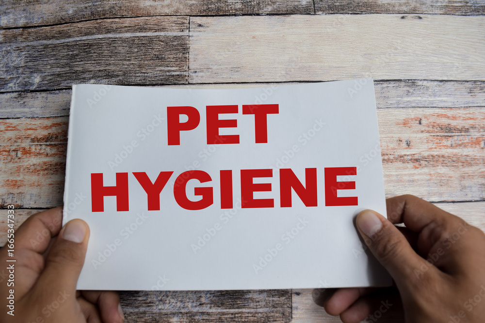 Concept of Pet hygiene write on book isolated on Wooden Table.