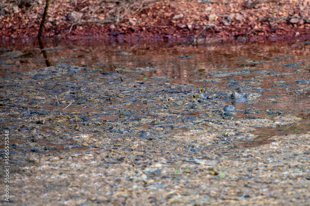 A Freshwater Crocodile (Crocodylus johnstoni) partly submerged. Lake Argyle, Western Australia.