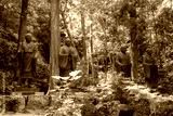 Bronze monk statues at Mitaki-Dera temple in Hiroshima, Japan
