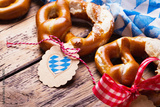 Oktoberfest - Brezeln mit Bayern Deko auf Holz