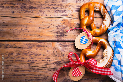 Oktoberfest - Brezeln mit Bayern Deko auf Holz