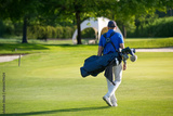 Golfer walking on the golf course carrying golf bag