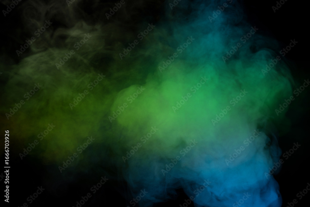 Blue and yellow steam on a black background.