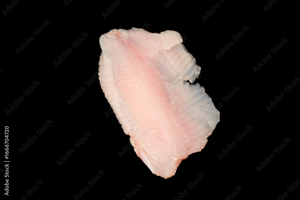 Fresh tilapia fillet on black background, top view.