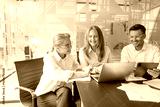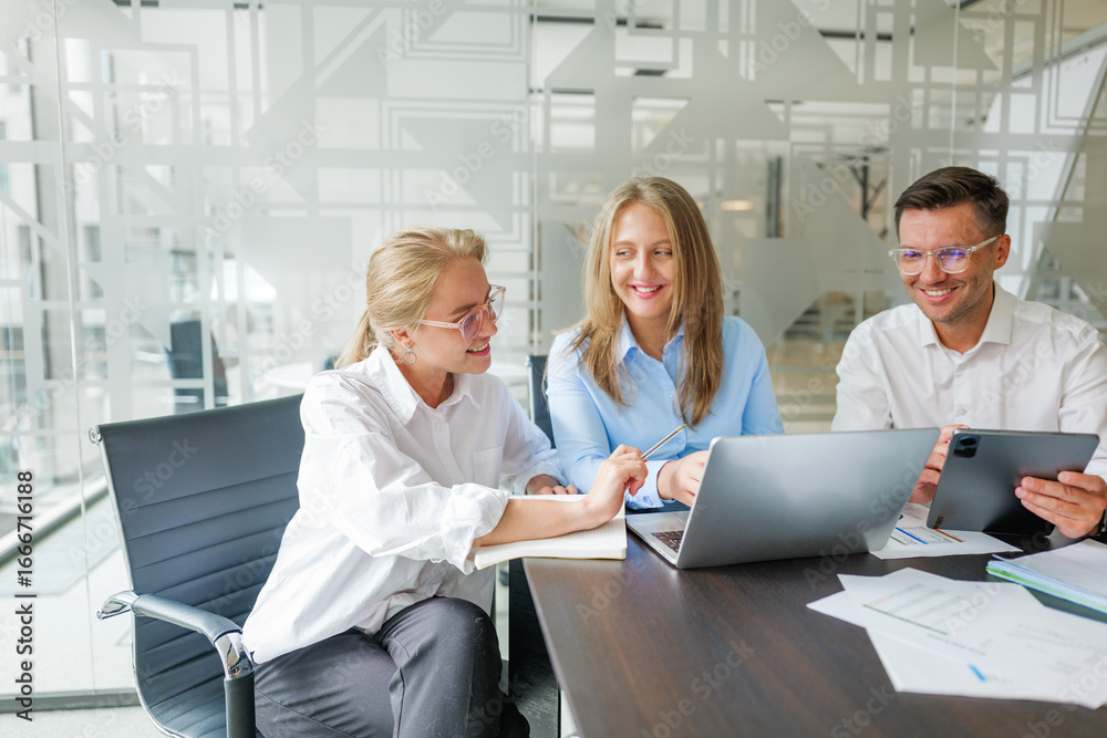 Collaborative team meeting in a contemporary office setting focused on project planning and discussion