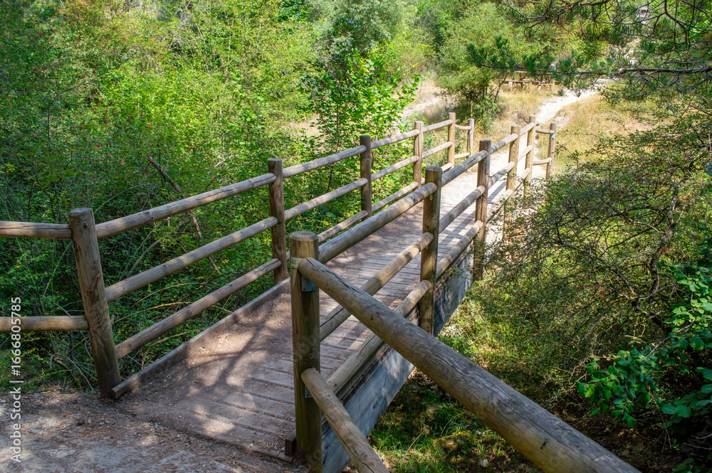 Puente de madera sobre el Río Júcar camino de la cascada del Molino de la Churrera