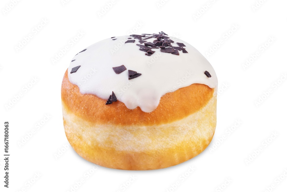 Donut with white chocolate glaze on a white isolated background