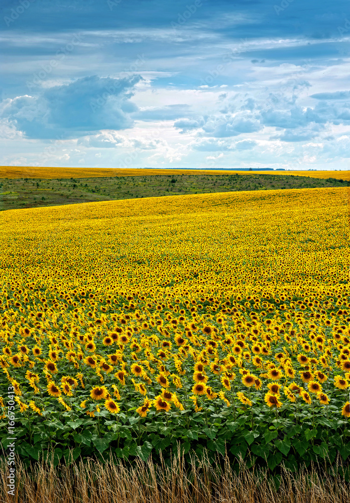 Sunflowers field with clouds