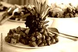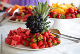 Catering showing fresh strawberries, watermelon, grapes and pineapple on a table